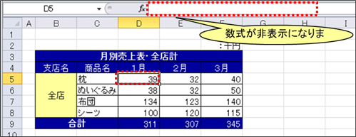 数式が非表示となります。 |