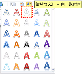 表示されたスタイルの中から、「塗りつぶし - 白、影付き」を選択します。 |