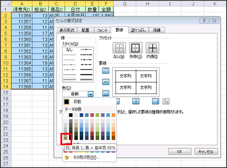 ※ご注意ください。罫線の色は、印刷時に問題のないように、設定後は印刷を実行して問題がないか確認する必要があります。 |