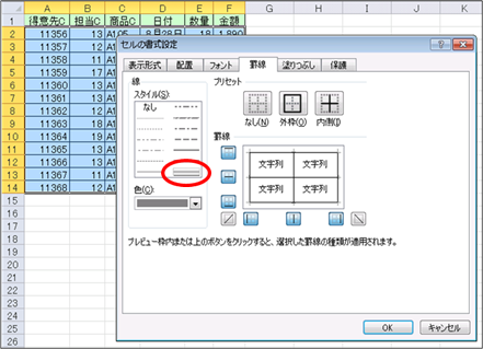 | ■さらに際立たせるために罫線のスタイルを二重線に変更します。 |