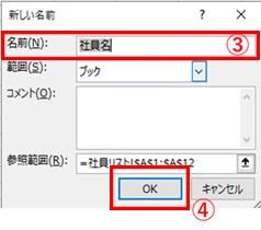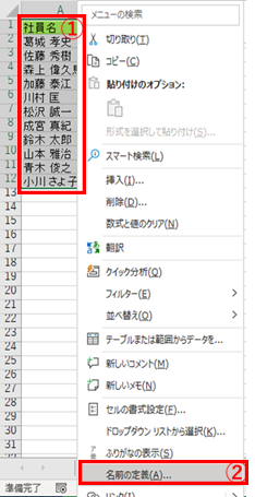 1.社員名リストを名前の定義で設定。 |