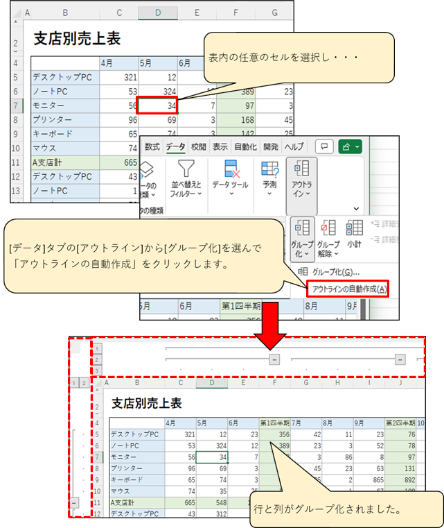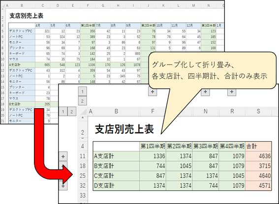 Excel情報545 データ--項目数の多い表の行や列を一瞬でグループ化し、見易くする方法 |