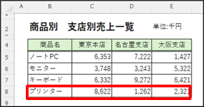 [名古屋支店]も同様に、D4セル(見出し)の値を省くため、[-1]としています。 |
