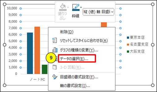 Hグラフを選択後、右クリックし、[データの選択]を押下 |