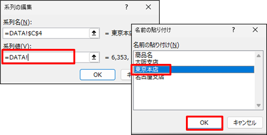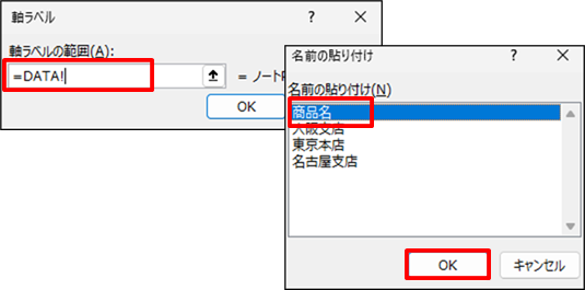 ・グラフのラベルと系列のデータにそれぞれ名前を付ける方法 |