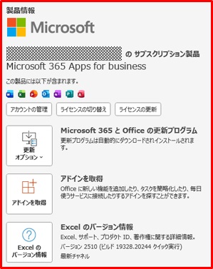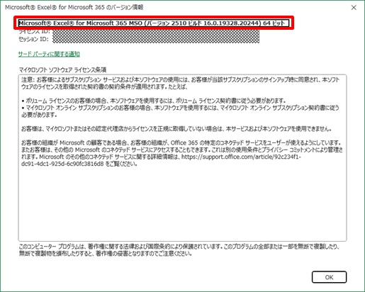 ■Excelのバージョン情報の確認方法