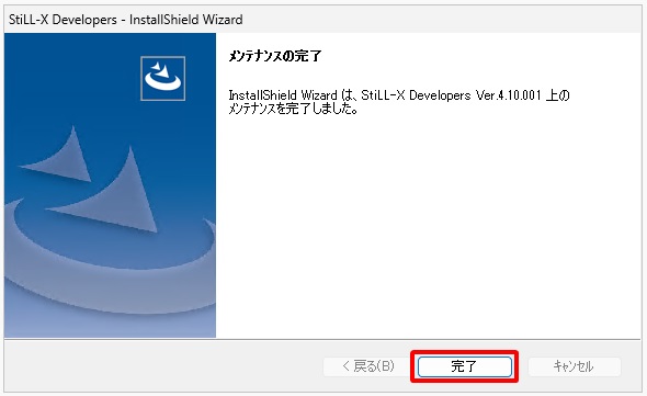D「メンテナンスの完了」画面が出ますので、[完了] をクリックします。