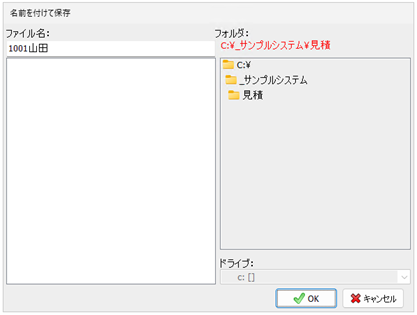 [名前をつけて保存(BtNamedSave)] の初期フォルダをC:\_サンプルシステム\見積のように保存させたいフォルダを指定します。