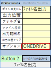1)オプションの設定欄を追加して、ONEDRIVE を設定できるようになったセルリンクボタン | ||||||||||||||||||||||||||||||||||||