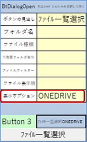 これまで ONEDRIVE の指定に関しては(ファイルを開く 「BtOpen」)など一部のボタンに限られておりました。 | ||||||||||||||||||||||||||||||||||||